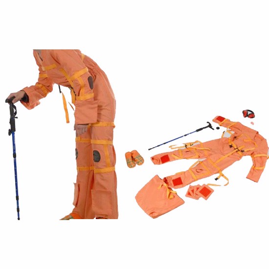 通過調整不同部位的調節(jié)帶可以逼真體驗老年人駝背、肌力減退、關節(jié)不靈活等狀態(tài)。