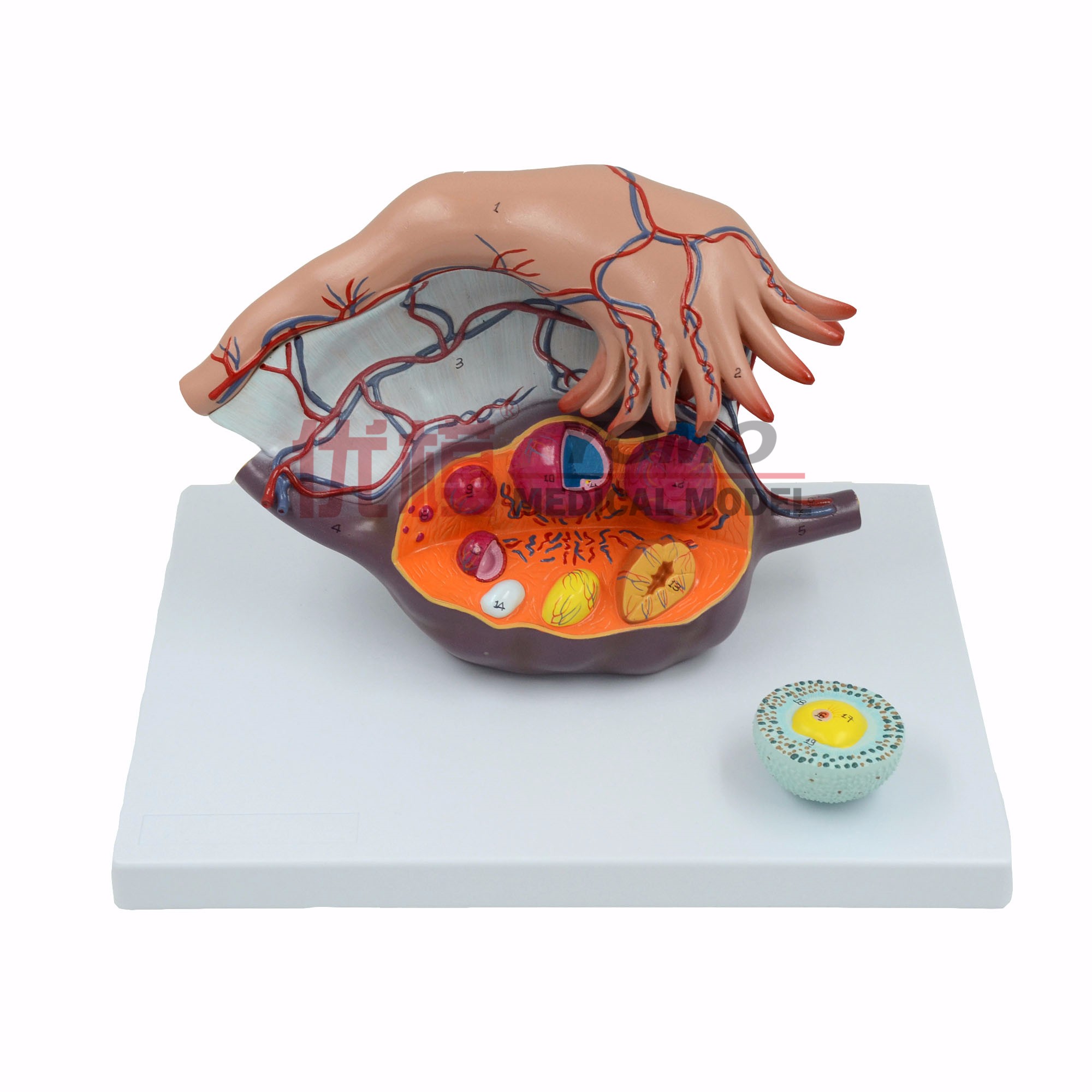 產(chǎn)品介紹:此卵巢模型為正常卵巢的5倍大,2部件。展示了人類卵巢和輸卵管傘的解剖結(jié)構(gòu)。同時卵巢切面展示了卵巢內(nèi)卵泡發(fā)育成熟的過程。由進(jìn)口環(huán)保PVC制成,人工寫色,做工精良。
