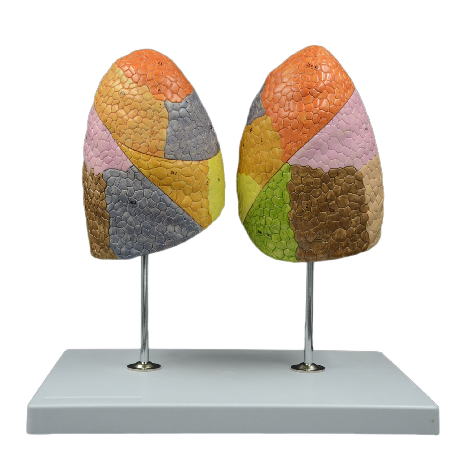 此款模型為自然大的人體左右肺模型,顯示了肺的10個(gè)肺段范圍,上葉,中葉,下葉的細(xì)節(jié)。