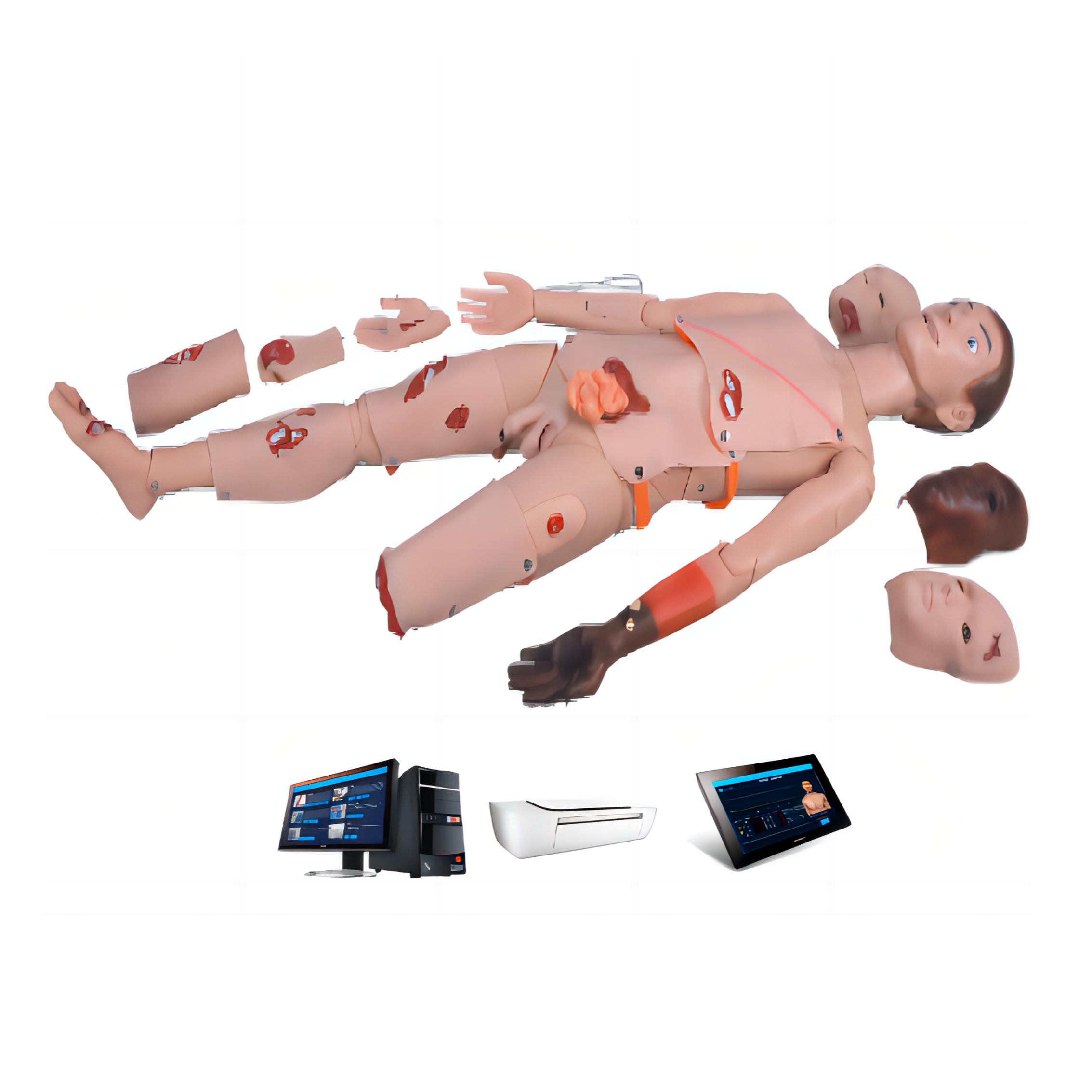 專為軍隊醫(yī)務(wù)人員打造的這款仿真培訓(xùn)系統(tǒng)功能卓越:實戰(zhàn)訓(xùn)練層面,逼真模擬戰(zhàn)場復(fù)雜情境與各類創(chuàng)傷,依據(jù)醫(yī)務(wù)人員操作精準評估,借助數(shù)據(jù)統(tǒng)計分析助力能力提升,使其在模擬實戰(zhàn)中積累經(jīng)驗。硬件性能突出,防水達 IP66 標準、2 米防摔、防塵、適應(yīng)零下 10 度至 50 度環(huán)境,還能防拖拽,確保在惡劣戰(zhàn)場條件下穩(wěn)定運行。生理模擬高度還原,呼吸、血壓等指標隨心調(diào)控,瞳孔、口唇呈現(xiàn)多種狀態(tài),12 處脈搏波動特性可調(diào)。操作訓(xùn)練豐富,涵蓋多種穿刺、心肺復(fù)蘇項目,兼容真實與仿真醫(yī)療設(shè)備,數(shù)據(jù)精準一致。再者,超 40 種戰(zhàn)創(chuàng)傷傷情、多處出血模擬真實,結(jié)合病例自動反應(yīng)、VR 沉浸式體驗,配合影像、衛(wèi)勤思維訓(xùn)練,還支持無線控制與數(shù)據(jù)共享,全方位賦能醫(yī)務(wù)人員成長。