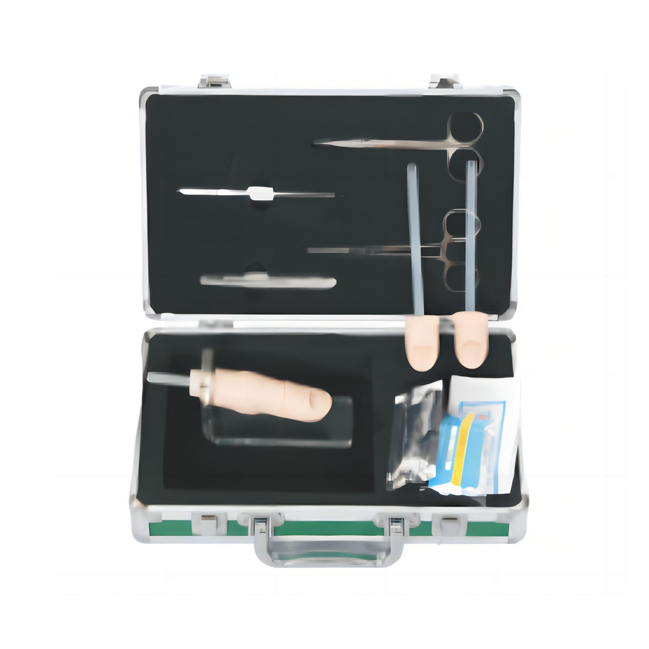 這款手指手術(shù)訓(xùn)練模型獨(dú)具特色。一方面,配備一個(gè)手指支架與三個(gè)指端,為精細(xì)的手指相關(guān)操作提供穩(wěn)定支撐,便于使用者模擬多種手指手術(shù)情境,精準(zhǔn)練習(xí)手部技能。另一方面,額外提供拔甲術(shù)練習(xí)模塊,專設(shè)一個(gè)指端用于此,讓學(xué)員能反復(fù)實(shí)操,熟悉拔甲術(shù)流程,有效提升手指手術(shù)操作熟練度。