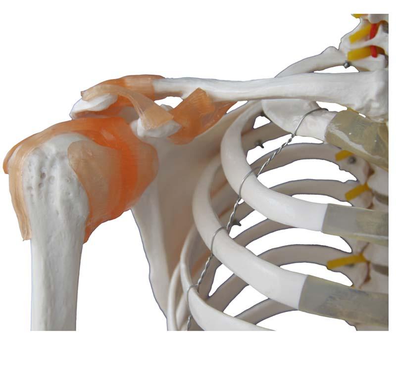 這個模型以XC-101為基礎,被涂上了肌肉和韌帶的油漆。骨骼的左側顯示肌肉的起點(紅色)和插入點(藍色)。