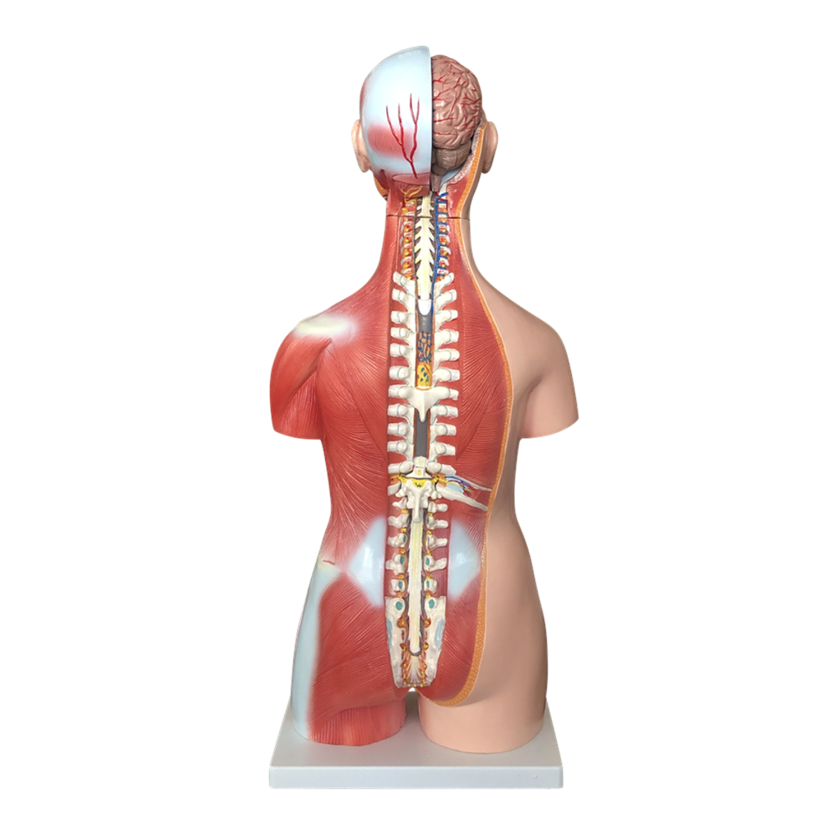 這個男女通用的軀干包括 30 個部分:軀干、胸部、頭部、眼球、大腦(1 部分)、脊神經(jīng)(1 部分)、肺(4 部分)、心臟(2 部分)、氣管、食管動脈、橫膈膜、肝臟、腎臟、胃(2 部分)、腸道(4 部分)、男性生殖器(4 部分)和女性生殖器與胎兒(3 部分)。尺寸:85CM。