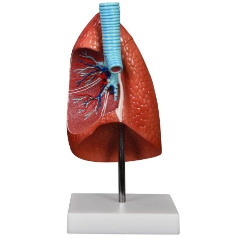 真人大小的切開肺模型顯示支氣管、動脈、靜脈、淋巴結(jié)、支氣管通道和氣管分叉。