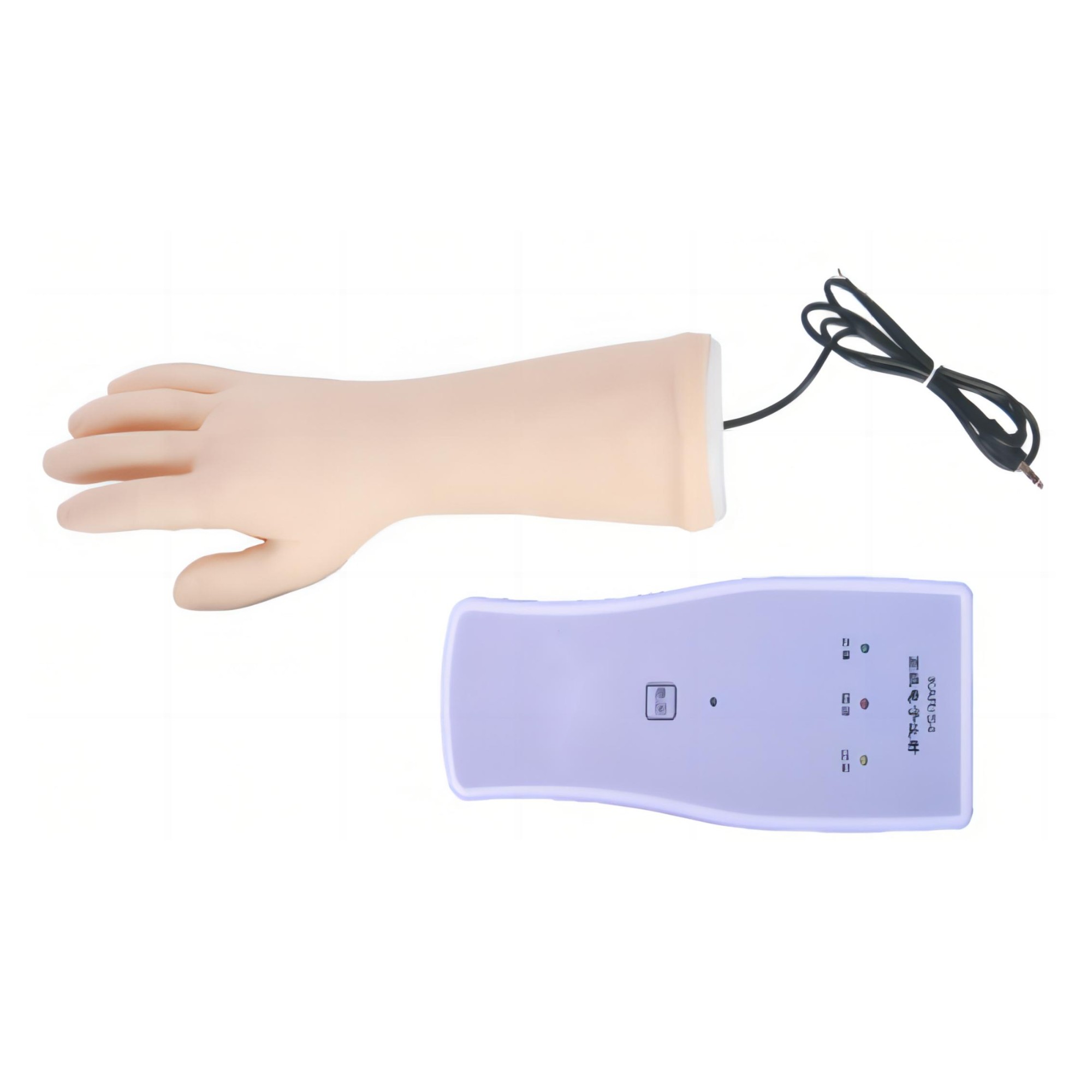 這款模型配備電子報警裝置,用于手部穿刺練習,能分別對針頭正確刺入、刺穿及刺偏血管,做出電子信息提示與報警提示。