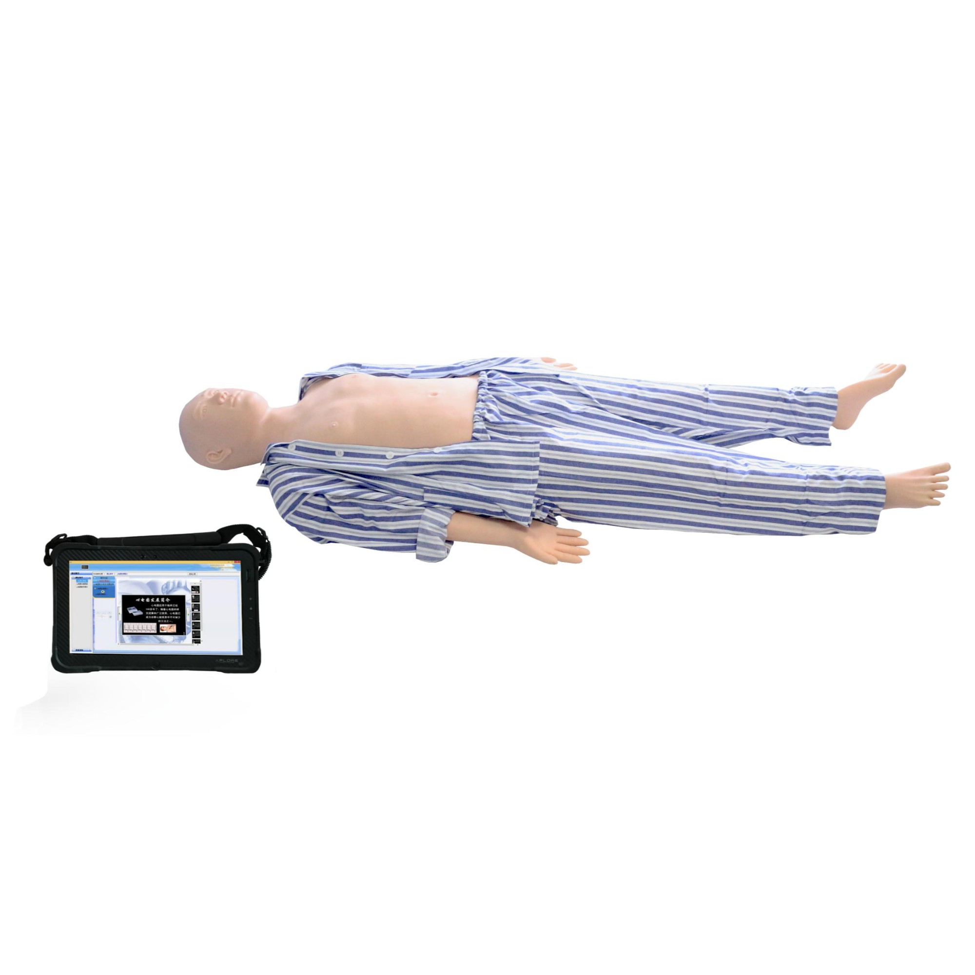 1、成年男性整體人,四肢身體均采用高分子材料制成,皮膚柔軟,富有彈性。解剖標(biāo)志明顯:劍突、胸骨、乳頭等,便于操作定位。