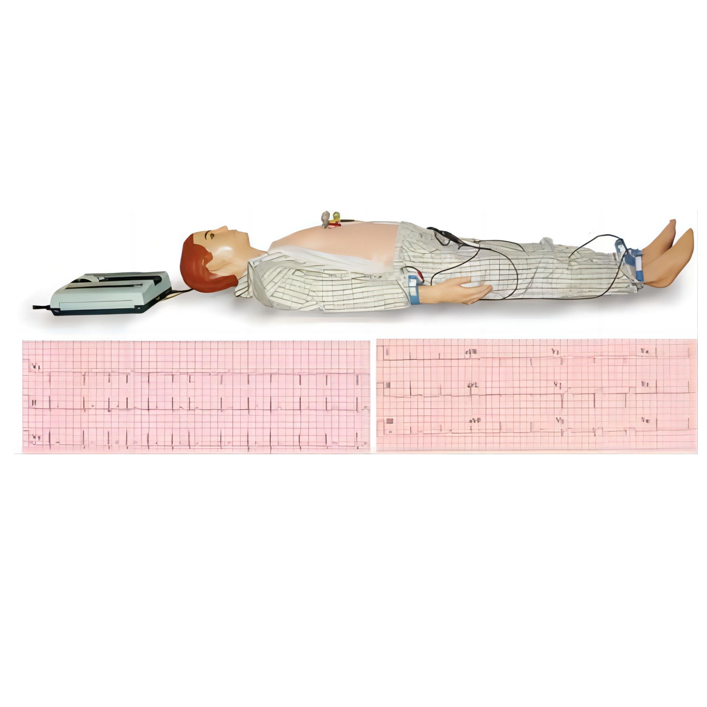 ▲ 心電圖模型人胸前及四肢設(shè)有標(biāo)準(zhǔn)十二導(dǎo)聯(lián)電極放置,與真人完全一致,可以與臨床心電圖機(jī)或心電監(jiān)護(hù)儀連接使用。