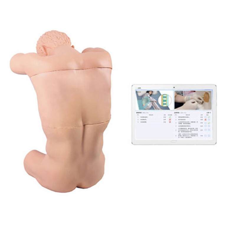 這款交互式胸腔穿刺操作訓(xùn)練模型(平板無(wú)線系列)選用優(yōu)質(zhì)源材料,采用精密制造機(jī)械制作而成。仿真標(biāo)準(zhǔn)化病人采用模擬反向坐姿坐于靠背椅上,雙臂平置,前額伏于前臂上,外觀形象逼真,體表標(biāo)志明顯,解剖位置準(zhǔn)確,肩胛骨、肋骨、肋間隙、脊柱棘突容易觸摸??赡M進(jìn)行胸腔穿刺示教練習(xí),當(dāng)穿刺針進(jìn)入胸膜腔后有明顯的落空感,穿刺成功后可回抽模擬胸水,適用于醫(yī)科院校進(jìn)行胸腔模擬穿刺操作訓(xùn)練時(shí)使用。