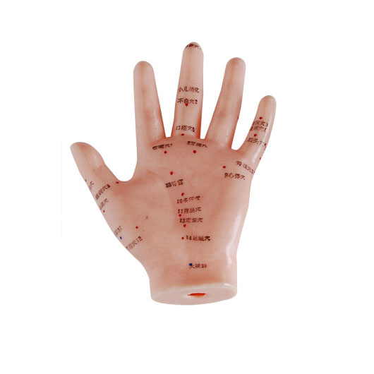 用軟而光亮的PVC制成的大規(guī)格的人手模型,顯示手背上的20個(gè)穴位和手心上13個(gè)穴位,穴位用漢字或數(shù)字標(biāo)注。附中英文使用手冊。 包裝:100件/箱,58x37x29cm,10 kgs