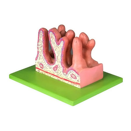 博友BM1086空腸內(nèi)面放大模型顯示空腸內(nèi)面粘膜表面許多絨毛結(jié)構(gòu),絨毛由粘膜上皮和固有層向腸腔突起而成,共有13個(gè)部位指示標(biāo)志。