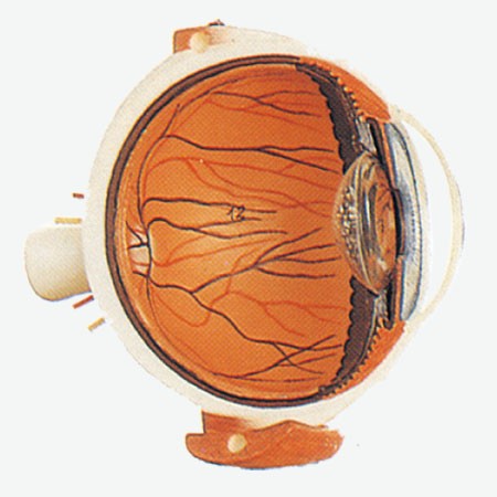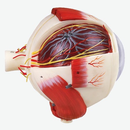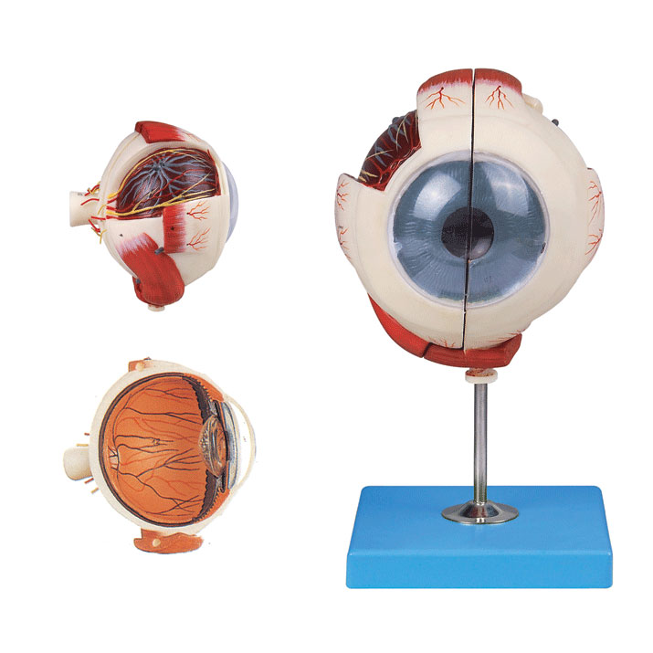 博友BM1190眼球放大模型該模型將眼球縱切成兩部分,左半側(cè)的晶狀體與玻璃體為固定形狀,右半側(cè)的鞏膜可局部打開看到脈絡(luò)膜,眼球內(nèi)部顯示睫狀體、視網(wǎng)膜以及視網(wǎng)膜剖面(視網(wǎng)膜神經(jīng)層構(gòu)造)等結(jié)構(gòu),共有28個部位指示標(biāo)志。