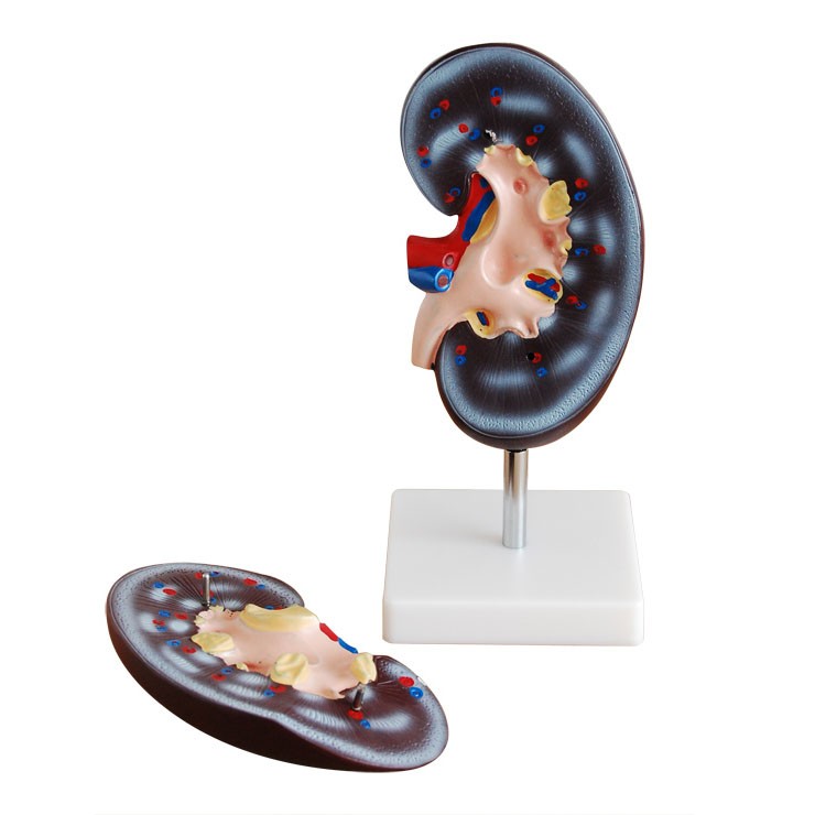 博友BOU-XC310-2腎解剖模型2件右腎作額狀切面,示腎門、腎血管、輸尿管和腎盂、腎實(shí)質(zhì)分髓質(zhì)及皮質(zhì)、錐體、乳頭等,模型放大2倍。