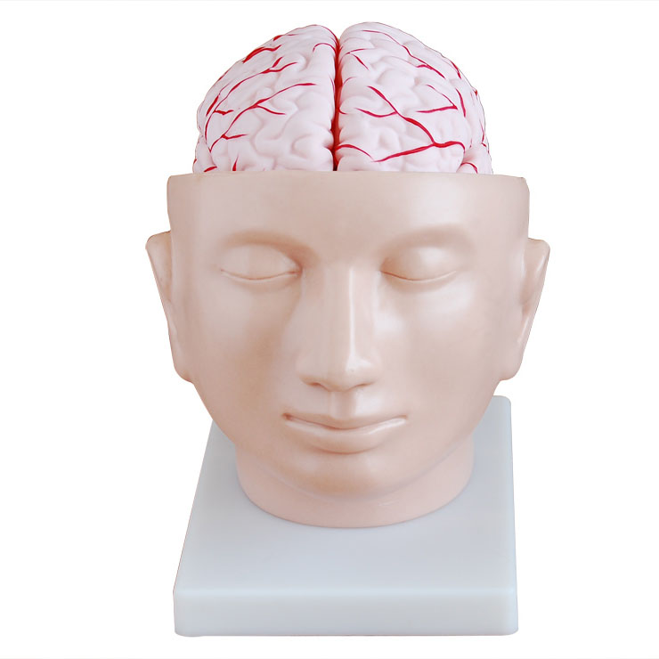 博友BOU-XC318頭部附腦和動脈模型這款模型顯示顱內(nèi)的腦結(jié)構(gòu),顱基之上頭部可平行打開。腦模型可中分以顯示腦動脈和可拆卸腦底動脈。兩半都可分解為: 前頂葉、顳枕葉、腦干、小腦置于基架上。
