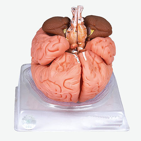 BM1124腦模型該模型由腦矢狀切面、大腦半球、小腦和腦干等8個(gè)部件組成,并顯示大腦半球、間腦、小腦和腦干中腦、腦橋、延髓各個(gè)部分,以及腦神經(jīng)等結(jié)構(gòu),共有98個(gè)部位指示標(biāo)志。