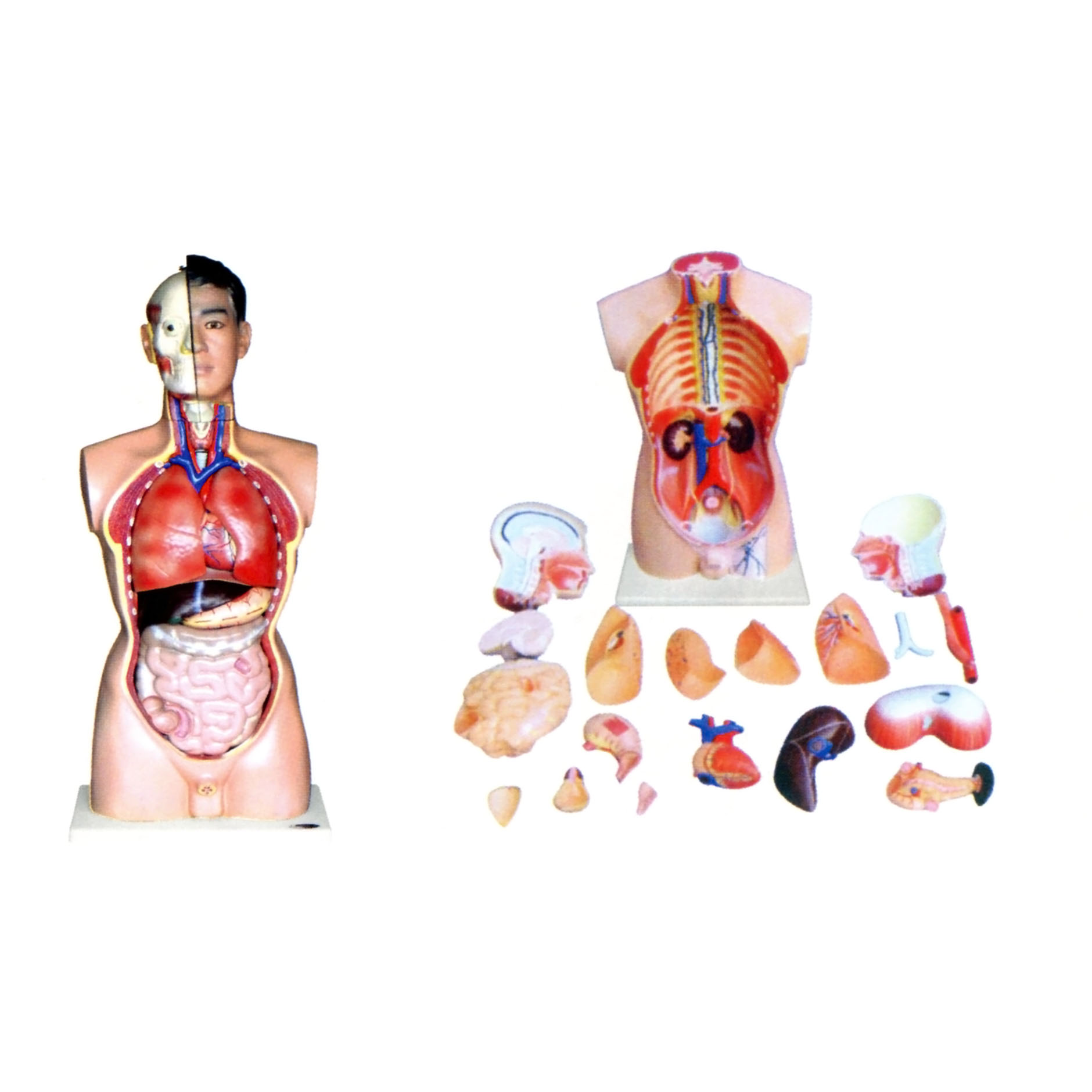 博友BM1258人體頭、頸、軀干模型(21部件)示胸腹腔臟器及消化、呼吸、泌尿生殖等系統(tǒng)。
