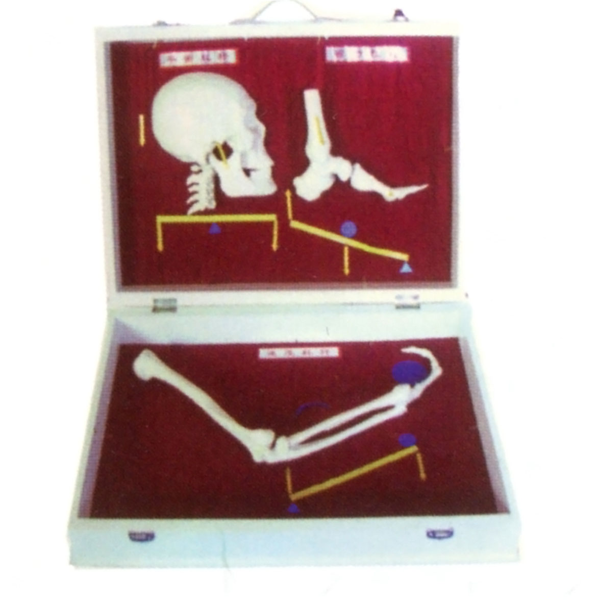 根據(jù)骨杠桿類型分別將上述骨加以連接,分別貼于杠桿的支點、力點和阻力點等標簽。有利于教師直觀講解和幫助學(xué)生理解人體骨杠桿概念分類和三類骨杠桿的傳遞力、平衡力、省力以及增大運動幅度與速度等所起的作用。