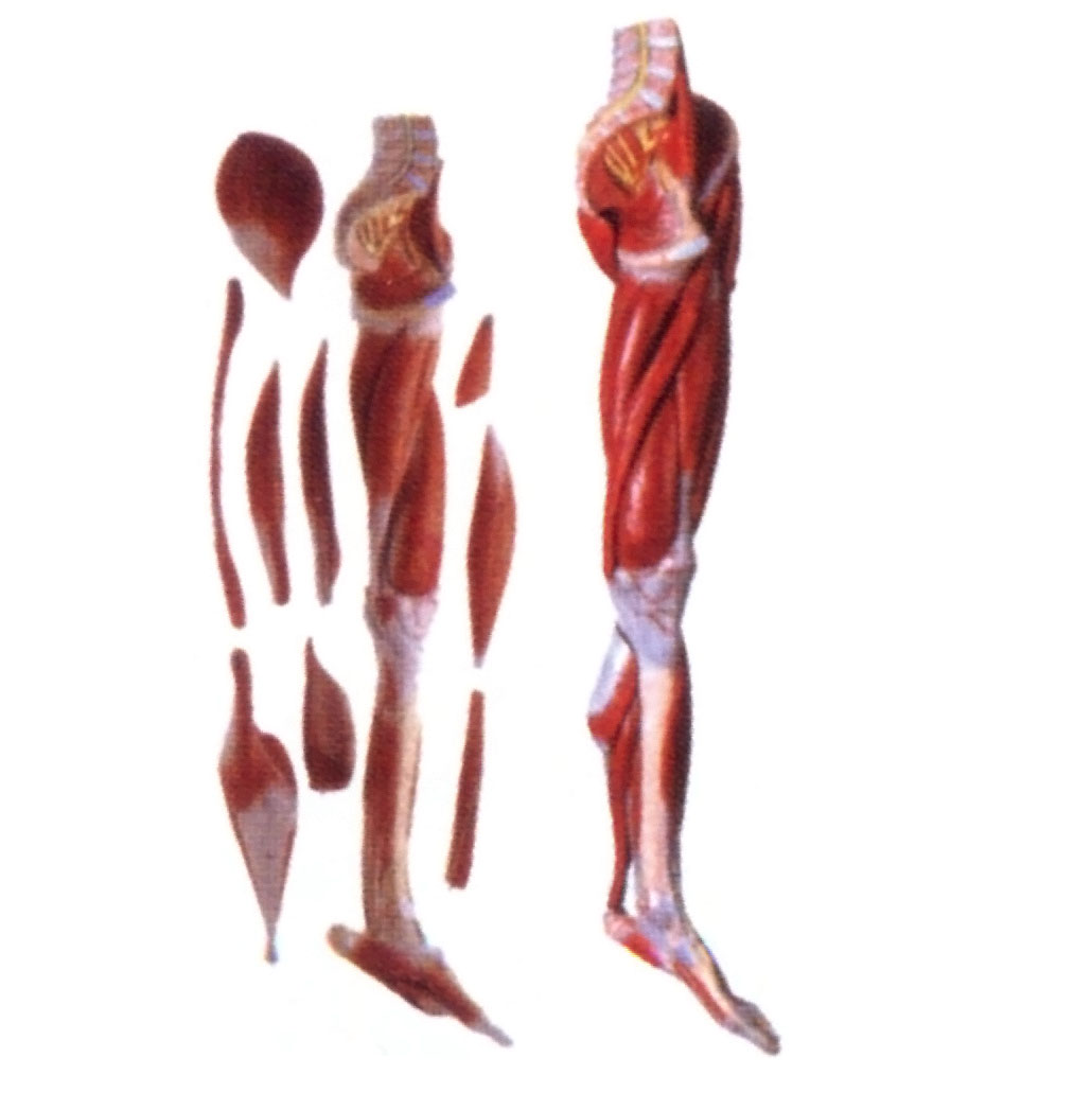博友BM1064-4下肢肌肉附主要血管神經(jīng)模型由下肢肌、闊筋膜張肌、臀大肌、縫匠肌、股四頭肌、股二頭肌、半腱肌、半膜肌、長伸肌、趾長伸肌、腓腸和小腿三頭肌等10個部件組成,并顯示髖肌、大腿肌、小腿肌和足肌等結(jié)構(gòu)。