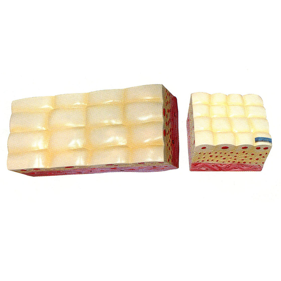 博友BM2035變移上皮組織模型示膀胱空虛時與充盈時各細(xì)胞頂面與側(cè)面的形態(tài),共有2部件。 尺寸:23×24×7cm