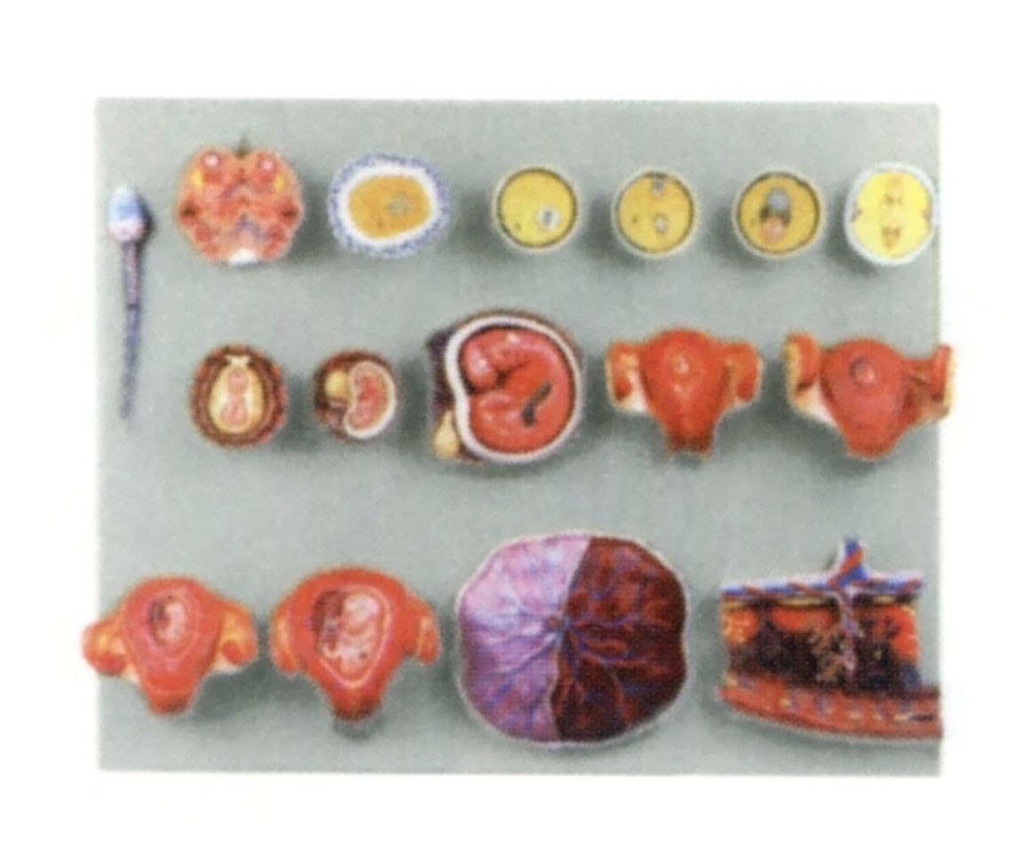 博友BM2072受精與早期胚胎發(fā)育過程模型由精子、卵巢、卵子、受精卵發(fā)育過程、胚盤、2-9周胚胎以及3月胎兒、胎盤等16個部件組成,并顯示從卵細胞發(fā)育到3月大小胎兒形成的人類早期胚胎發(fā)育過程等結(jié)構(gòu),共有16個部位指示。