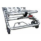 采用高質(zhì)鋁合金材料,配接件鋁合金壓鑄。采用海綿軟墊,使傷病員躺臥舒適。折腿機械結(jié)構(gòu),通過左右手柄控制。僅需一名救護人員把病人推上救護車。