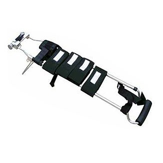 由鋁合金制成,長(zhǎng)度可調(diào)節(jié),有尼龍綁腿帶子的自動(dòng)牽引裝制。有成人和兒童兩種尺寸。