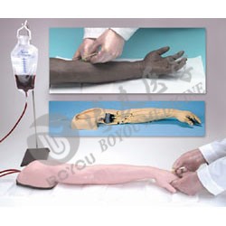 A revolutionary training arm that provides complete venous access for IV therapy and phlebotomy, plus sites for intramuscular and intradermal injections. An extensive 8-line vascular system allows students to practice venipuncture at all primary and secondary locations, including starting IVs and introducing IV catheters. The venous system simplifies set-up with only one external fluid bag supplying artificial blood to all veins simultaneously.