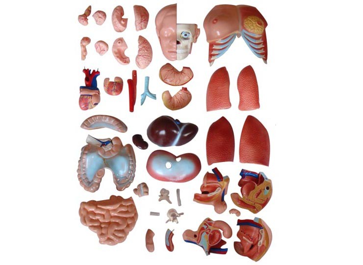 博友BOU-XC208兩性互換軀干模型85cm(40件)這款兩性軀干模型分成40件:軀干,女性胸腔蓋,頭,眼球,腦(8件),脊椎神經(jīng)(4件),肺(4件),心(2件),氣管,食管和主動脈,橫膈膜,肝,腎,胃(2件),腸(4件),男性生殖器官(4件)和女性生殖器官帶胎兒(3件)。